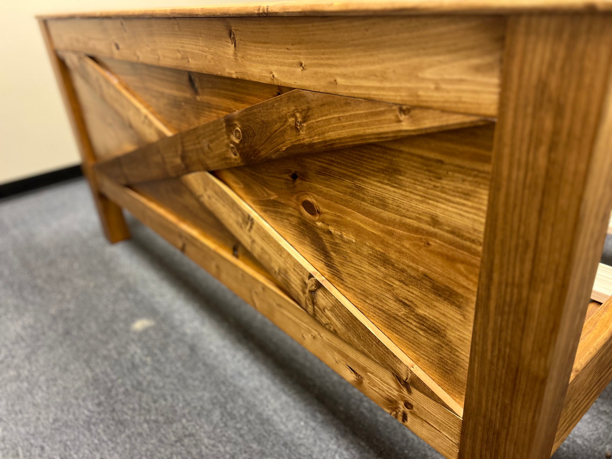 Our product are solid wood to build furniture. Mostly, we use Pine, Knotty Alder wood, White or Red Oak, Maple, Black Walnut. We don't use modified wood like veneer, plywood or mdf.