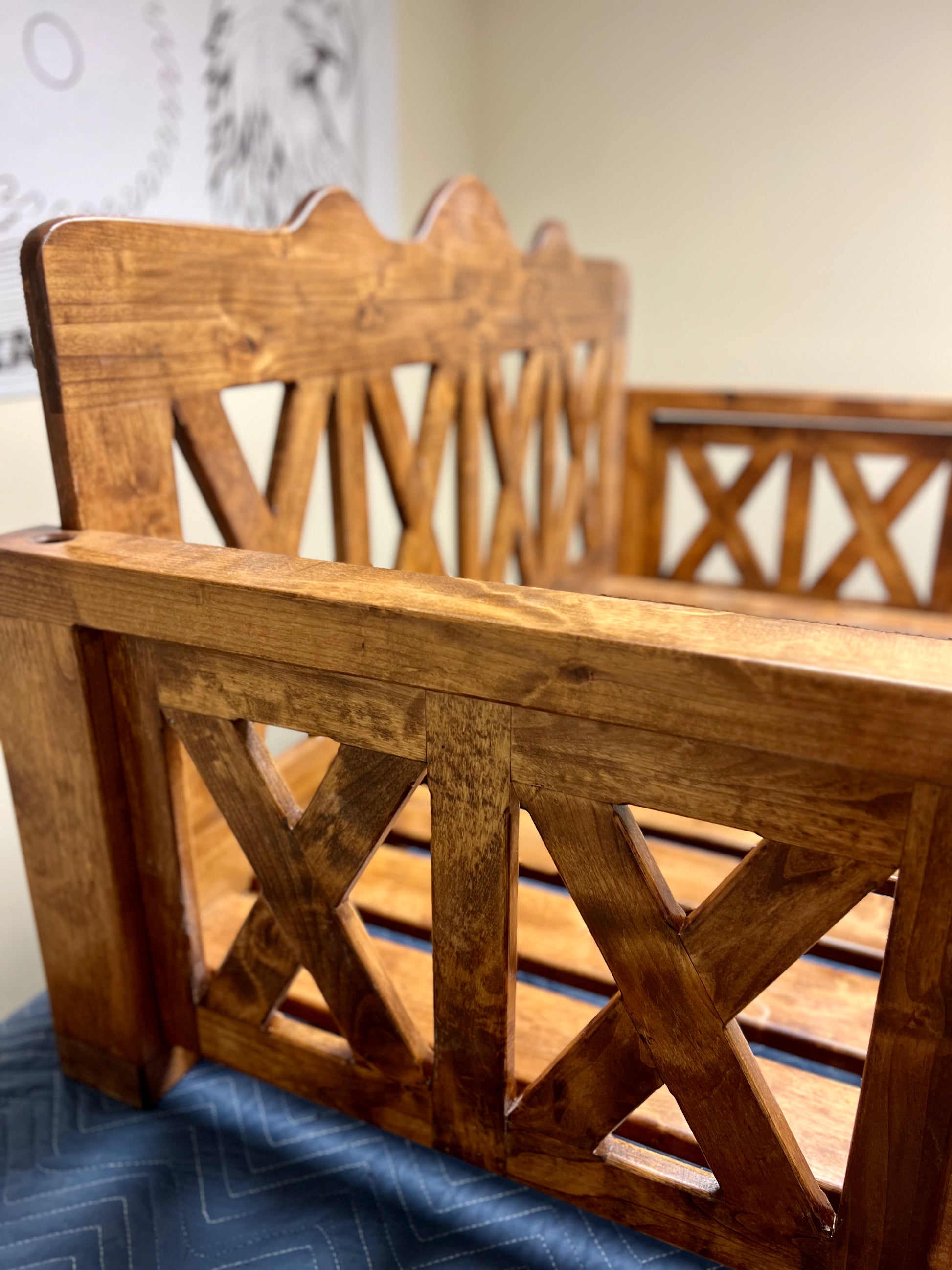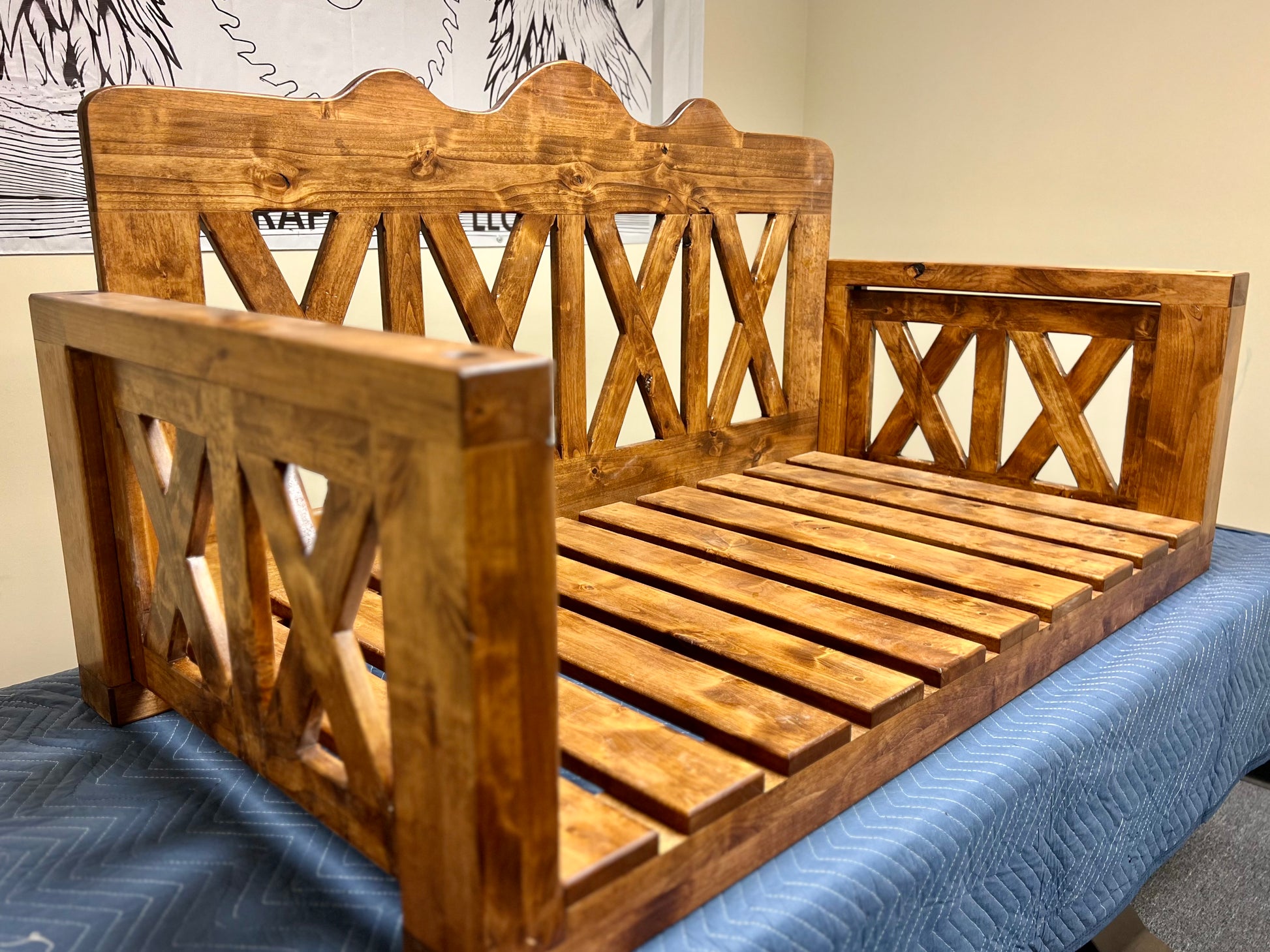 We offer customization options stain or paint color, wood type, size, and design modification, feel free to contact us for more information.